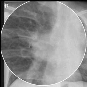 Die zentrale Lungenembolie zeigt selten direkte Röntgenzeichen. Indirekte Hinweise sind ein abruptes Gefäßabrisszeichen, periphere Oligämie oder ein pleuranaher, dreieckiger Verschattungskegel. Diese Zeichen sind unsensitiv. Bei klinischem Verdacht ist die CT-Angiografie Mittel der Wahl.